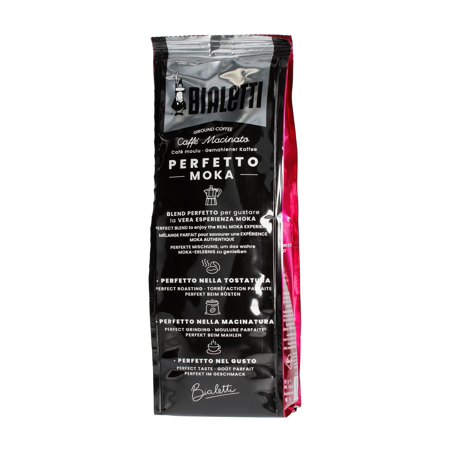 Bialetti Perfetto Moka Delicato ist ein italienischer, mittelgerösteter, gemahlener Espresso Kaffee. 100 % Arabica aus Brasilien, zart, mit hervorgehobenen Noten von Haselnuss und Trockenfrüchten.