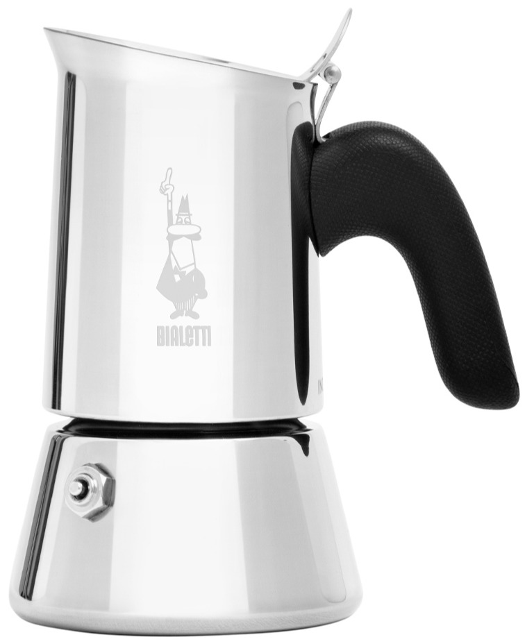 Der Bialetti Venus Mokka-Topf ist eine italienische Espressokanne aus Edelstahl für den Herd. Er funktioniert auf allen Herdarten, auch auf Induktionsherden.