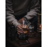 Wir haben die Chemex für die Zubereitung größerer Kaffeemengen (über zwei Tassen) gekauft, und sie hat in dieser Hinsicht bestens gedient. Bietet fast die gleichen Variationsmöglichkeiten wie die V60 und zudem deutlich mehr Volumen, solange man bedenkt, dass die Glaskanne das Getränk nicht sehr lange warm hält. Das Einwickeln der Kanne in ein Küchentuch und die Verwendung des Deckels helfen, die Temperatur zu halten. Die Reinigung ist einfach und die Filter können leicht in den Kompostabfall gegeben werden, außerdem ist Chemex so stilvoll, dass sie auch dem kritischsten Inneneinrichter den Tag nicht verdirbt. Ich empfehle sie, damit kann man natürlich auch problemlos eine kleinere Menge Kaffee zubereiten.