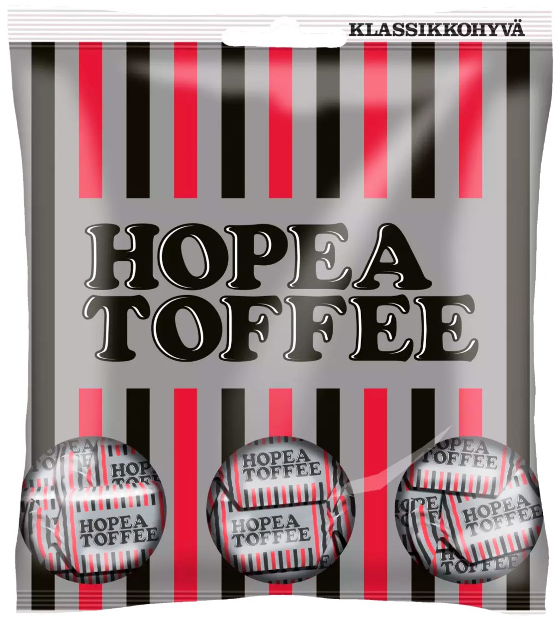 Hopeatoffee (Silbertoffee) ist ein klassisches finnisches Salmiak-Lakritz-Toffee, das Fans seit den 1960er Jahren begeistert. Es war das erste Bonbon, bei dem Salmiak und Toffee kombiniert wurden. Hopeatoffee wurde zudem mit dem renommierten Salmiakki-Finlandia-Preis ausgezeichnet.