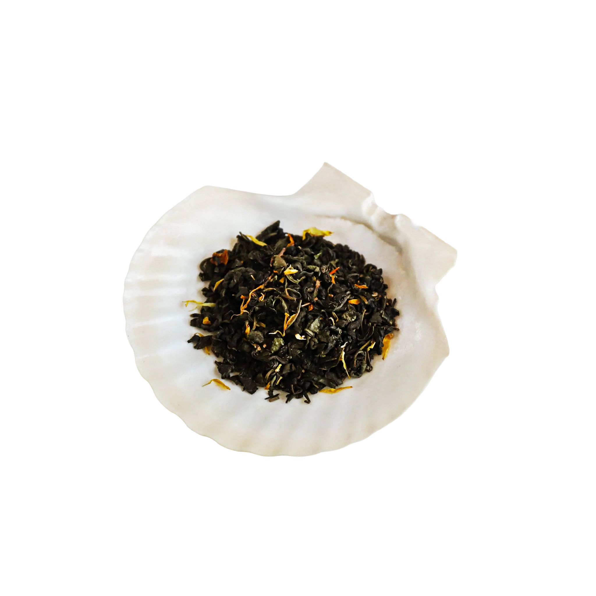 Grüner Tee, Natürlicher Pfirsich- und Aprikosenaroma (8%), Pfirsich- und Aprikosenstücke (2%), Ringelblumenblüten.