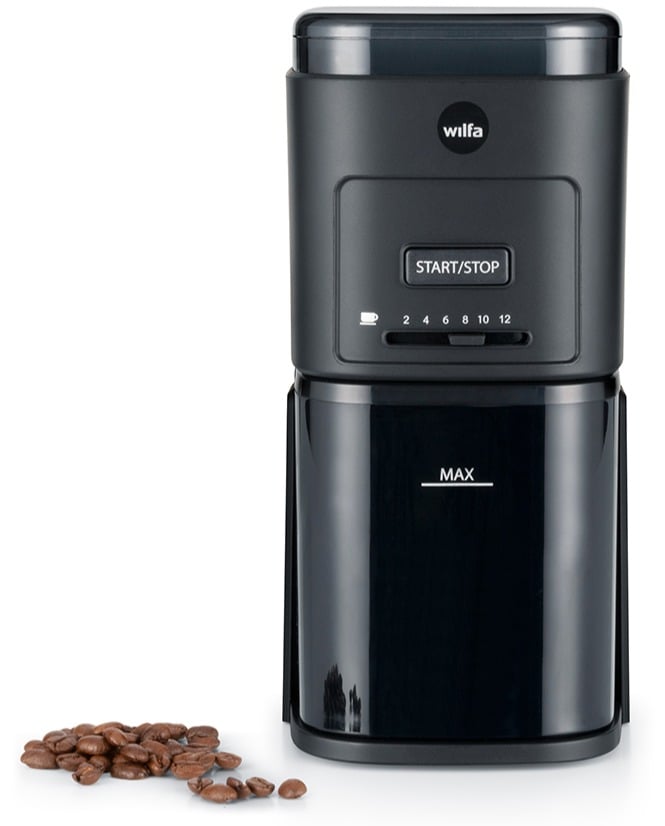 Ich habe den großen Wilfa-Kaffeemühlen und würde diesem 5 Sterne geben, wenn Sie den Platz dafür haben. Ich habe diesem kleinen Wilfa nur 4 Sterne gegeben, weil er sehr laut ist und ein oder zwei Kaffeebohnen immer zurückbleiben, aber er ist großartig, wenn Sie wenig Platz haben.