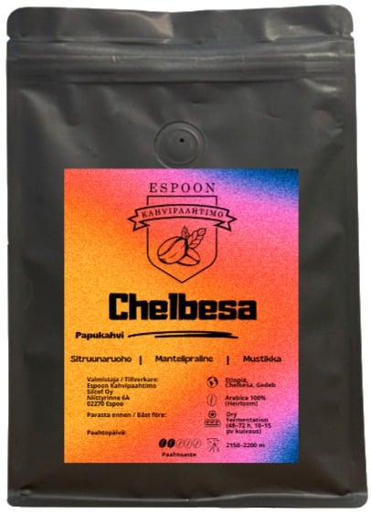 This coffee comes from the village of Chelbesa in the Gedeb region of Ethiopia and represents the region's unique character at its best. The heirloom variety coffee plants grow at high altitudes, 2150–2200 meters, and the beans have been processed using the dry fermentation method for 48–72 hours and dried for 10–15 days on beds.
