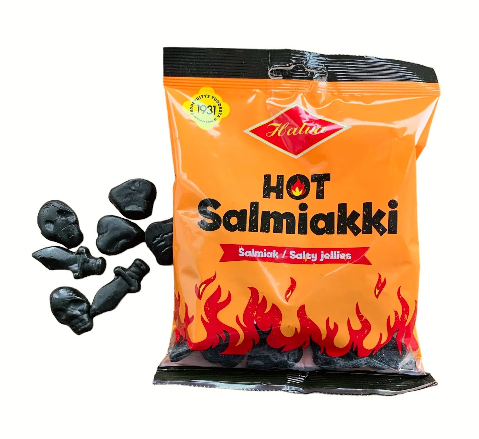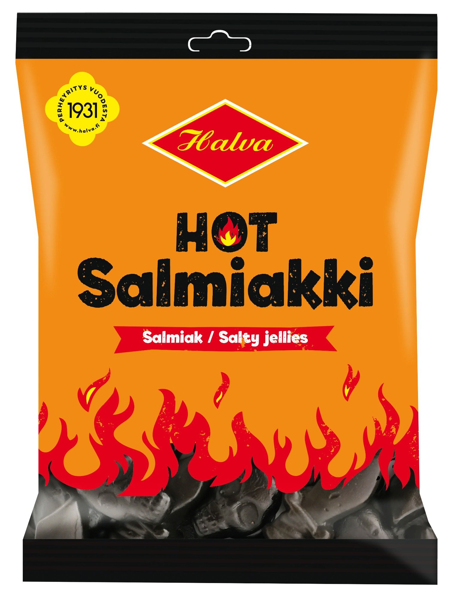 Halva Hot salmiak with a strength that varies from fiery strong to super salty.