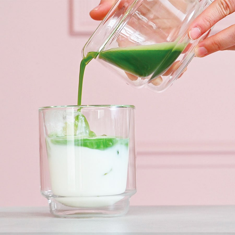 The double-wall construction keeps your matcha warm while remaining cool to the touch, and the clear, heatproof borosilicate glass showcases the rich green hue of your brew.