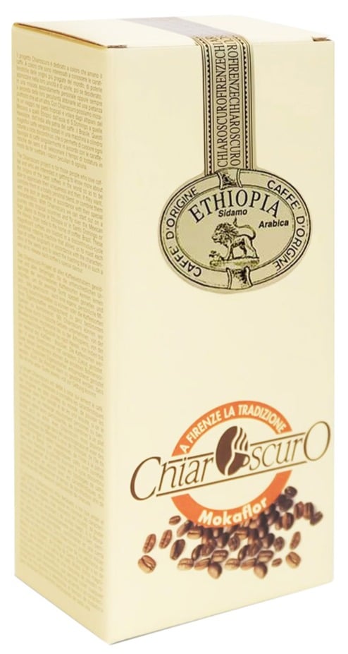 Mokaflor Chiaroscura Ethiopia Sidamo celebrates the birthplace of Arabica coffee. Sourced from Ethiopia’s historic Kaffa region, where coffee still grows wild, it offers a round-bodied brew with a delicate flavour and fruity aroma.