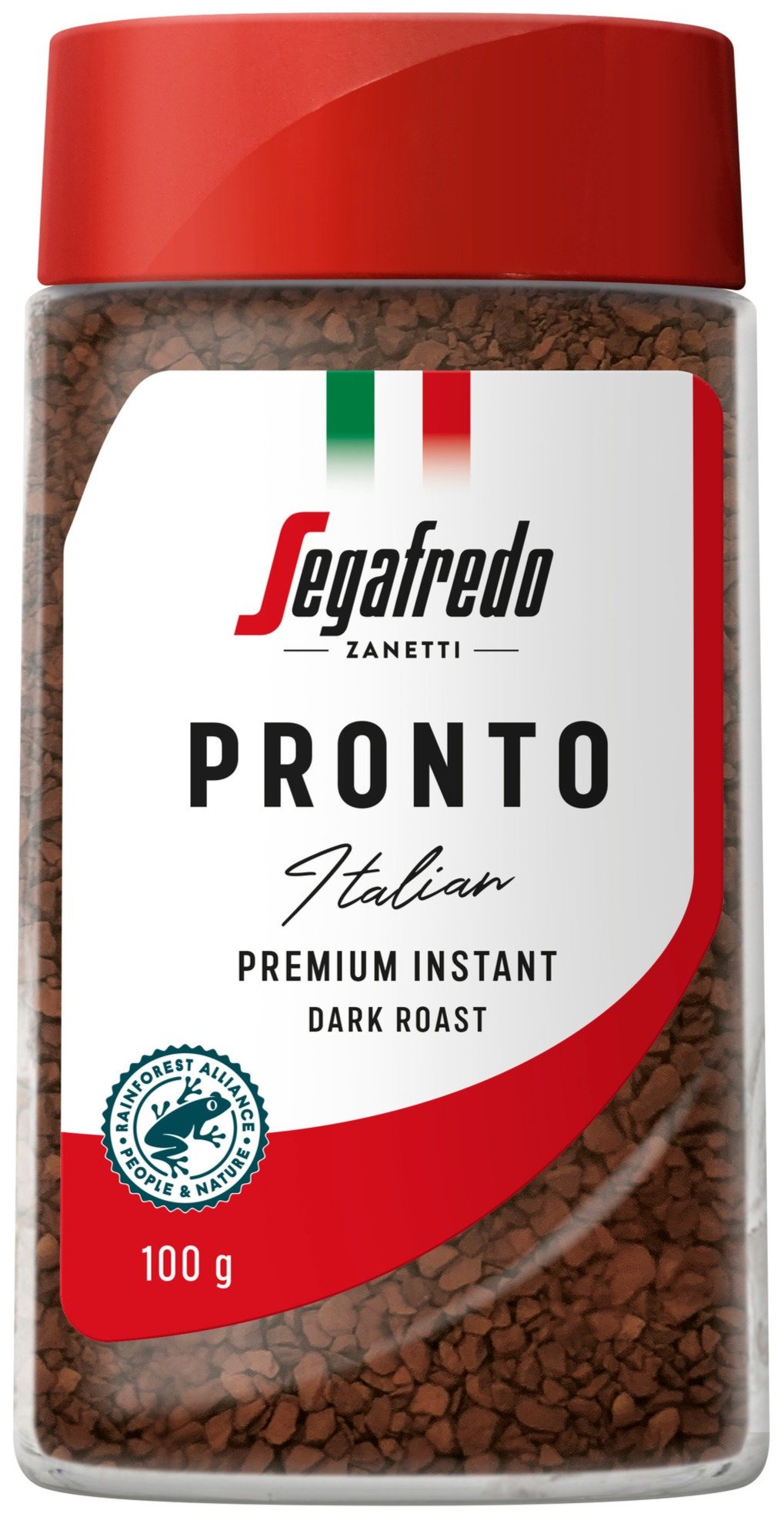 Segafredo Pronto Instant coffee is a toasty, full-bodied and pleasantly soft dark roasted coffee, with a hint of honey in after taste. The coffee is Rainforest Alliance certified.