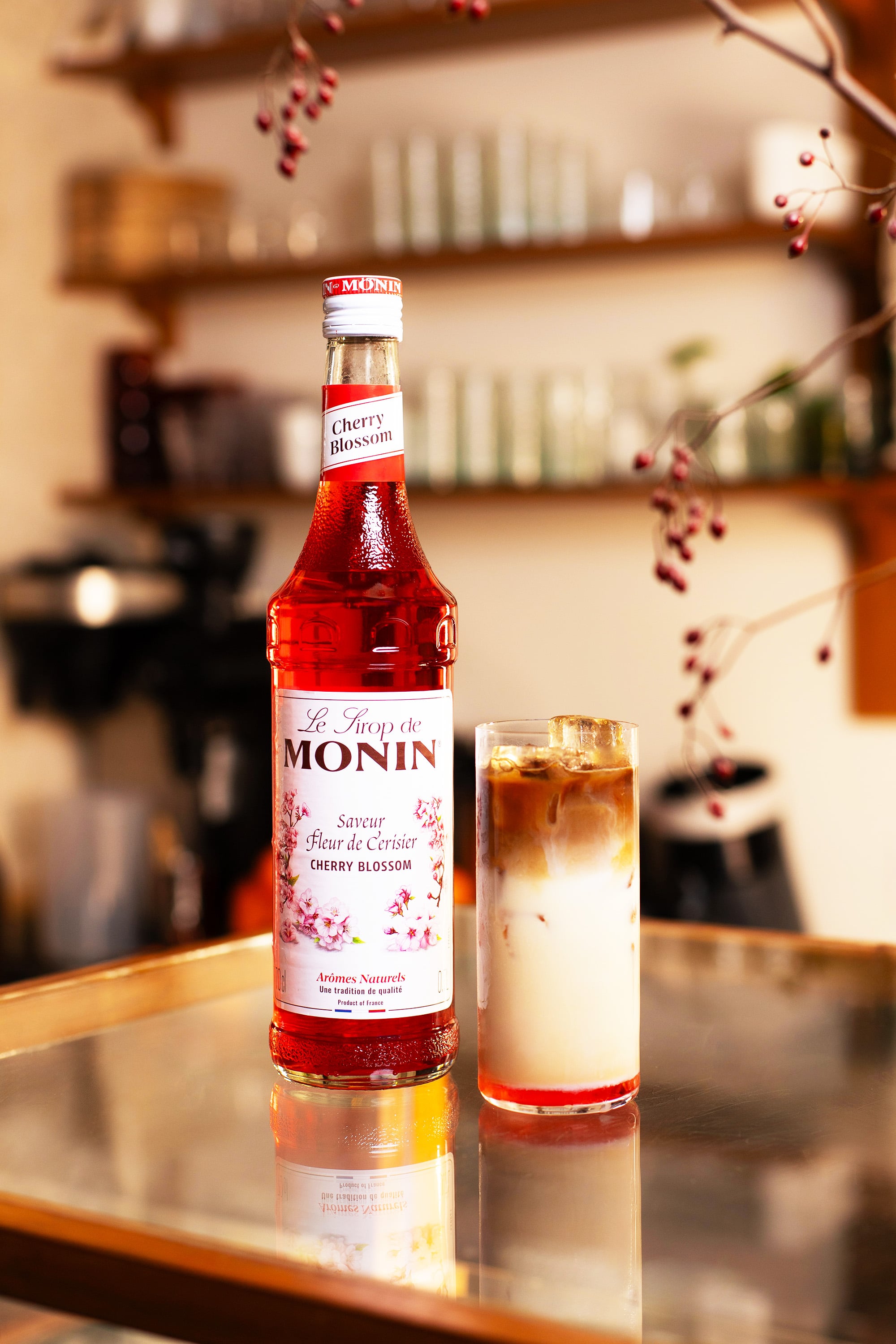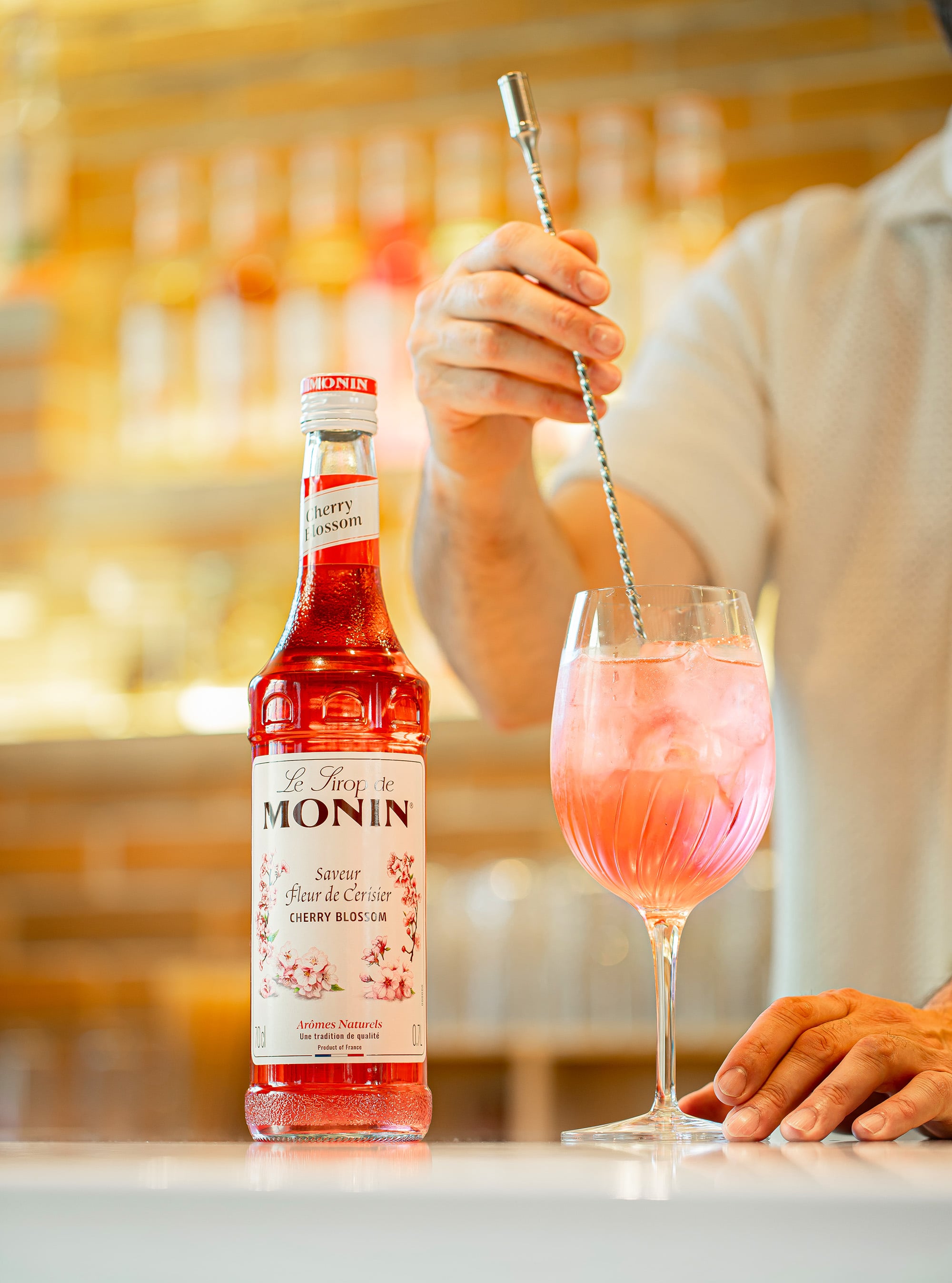 El sirope MONIN Cherry Blossom aporta una dulzura delicada y floral inspirada en la temporada japonesa de sakura. Su sabor ligero y elegante añade una sutil nota de flor de cerezo a bebidas y postres sin resultar dominante.