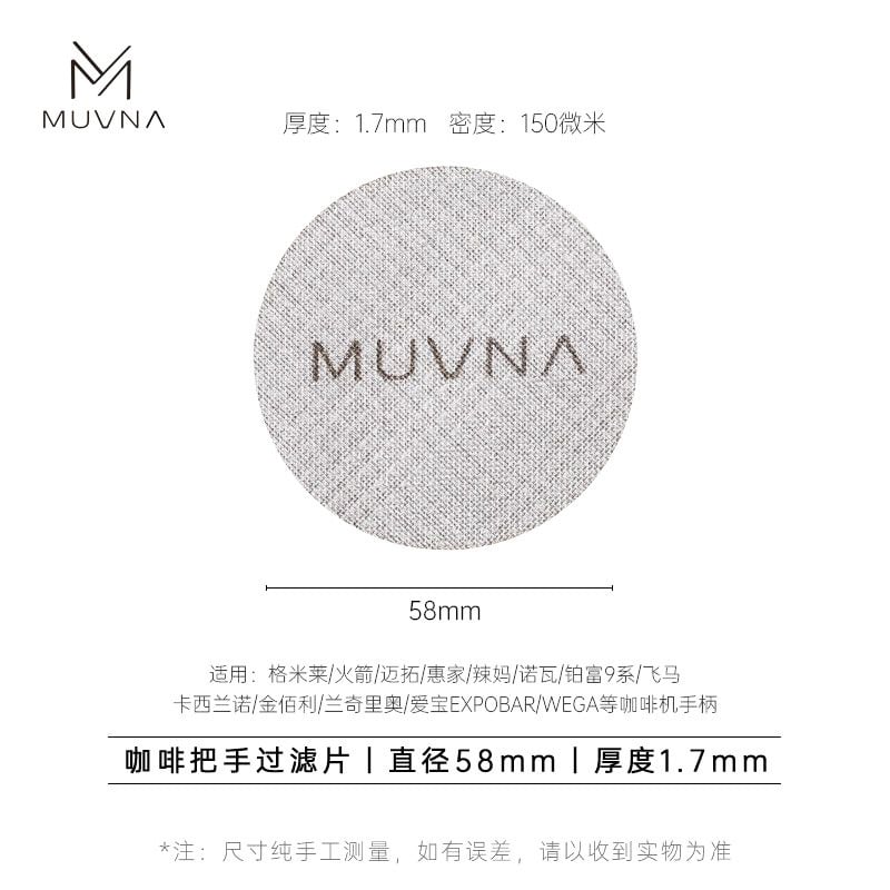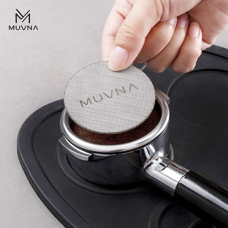 La MUVNA Puck Screen está hecha de acero inoxidable de 1,7 mm y es compatible con portafiltros de 58 mm. Favorece una distribución uniforme del agua para una extracción de café más consistente.