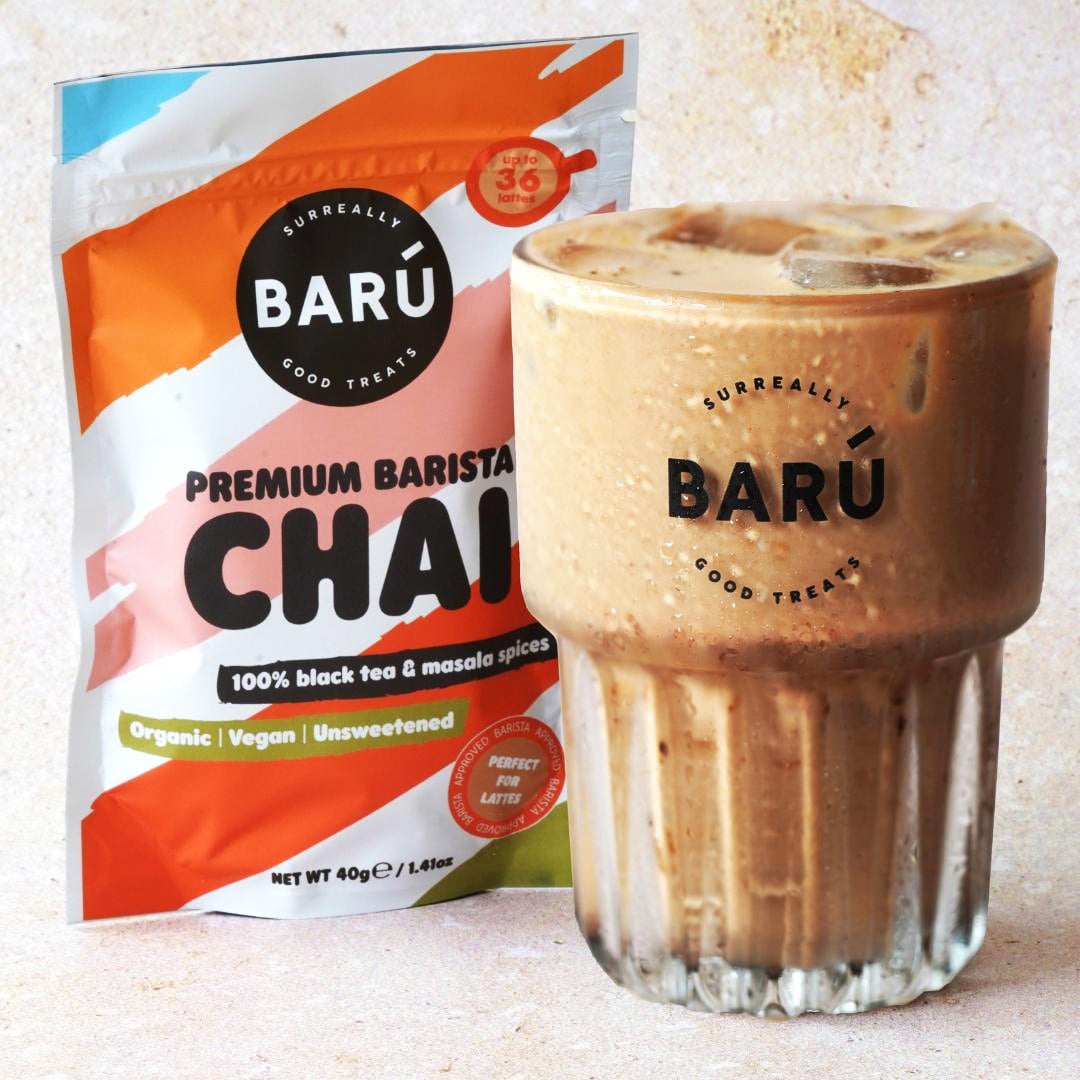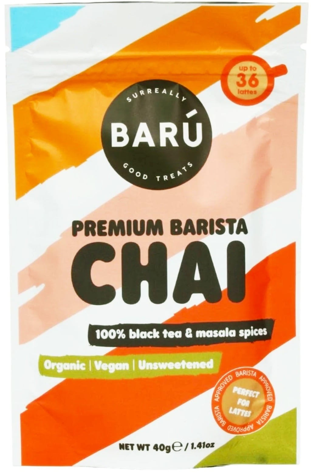 Barú Premium Barista Chai - Un mélange de chai latte à base de thé noir et d'épices masala traditionnelles telles que la cannelle, le gingembre et la cardamome. Conçu avec des ingrédients 100 % biologiques et sans sucres ajoutés.