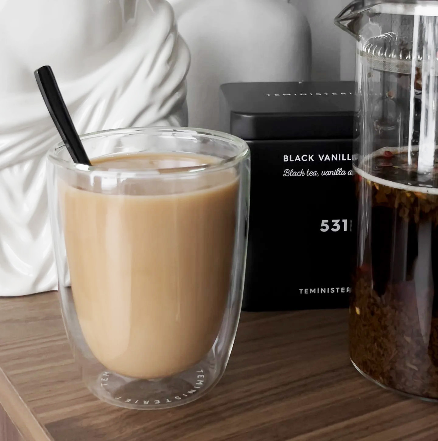 Teministeriet 531 Black Vanilla Chai combineert zwarte thee met klassieke chai-specerijen zoals kaneel, kardemom en gember, afgewerkt met een vleugje vanille. Het resultaat is een volmondige infusie met een zoete, kruidige geur. Goed uitgebalanceerd en vol karakter is deze thee een uitstekende manier om de dag te beginnen.