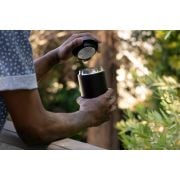 BOCA AMPLA E AROMÁTICA Você não bebe por um buraquinho minúsculo em casa. Uma boca inspirada na caneca permite que você sinta todo o aroma do café e verifique a temperatura antes de beber.